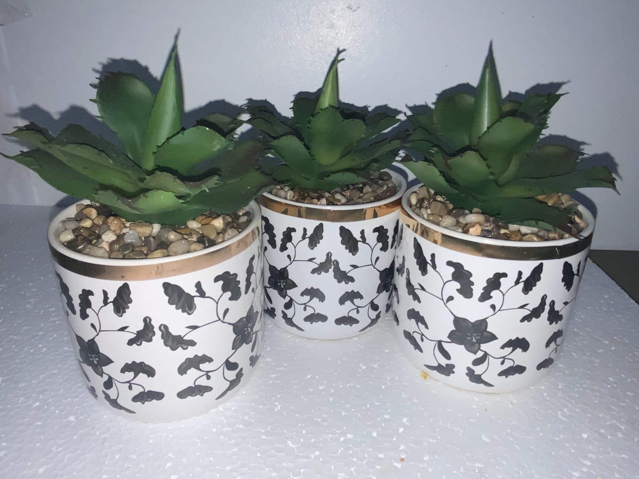 Set of 3 Black White & Gold Potted Faux Succulents