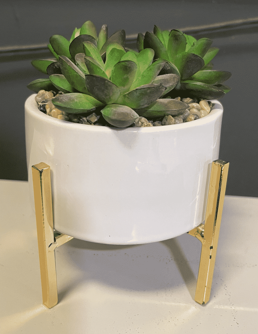 Faux Potted Snake Plant Black & Gold Pot on Wood Stand 12”
