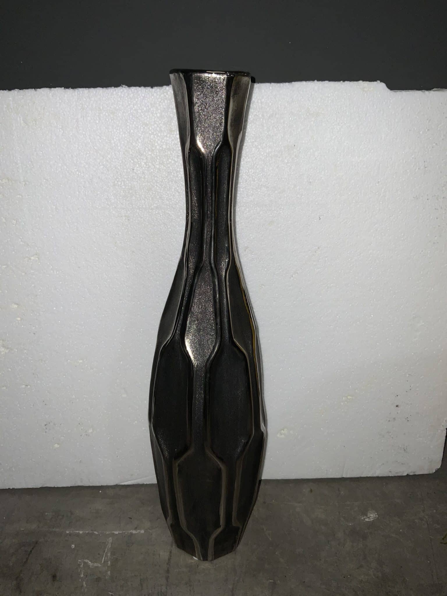 Tear Drop Chrome & Charcoal Hexagon Vase 19”x3”