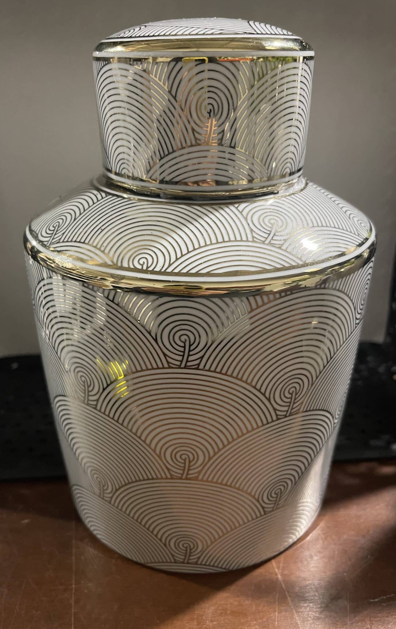 White & Gold Circles Decorative Jar 8x5.5 quantity