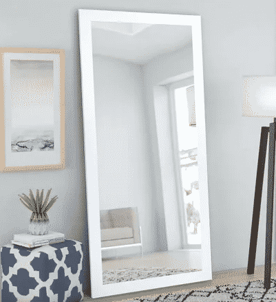 4″ white framed leaning mirror